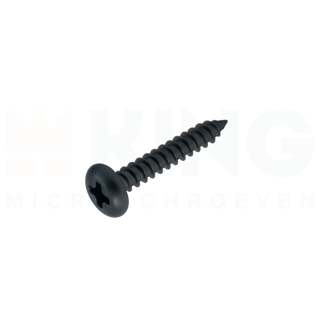 Deze bolcilinderkop schroeven zijn voorzien van een kruisgleuf en zijn uitgevoerd in een zwarte stalen uitvoering. Stalen schroeven zijn sterker dan RVS. Tijdens de productie zijn deze schroeven zwart gecoat, hierdoor zien ze er strak uit en hebben ze een egale zwarte kleur. Deze schroeven zijn niet bestand tegen corrosie, hiervoor adviseren wij altijd onze RVS Plaatschroeven.